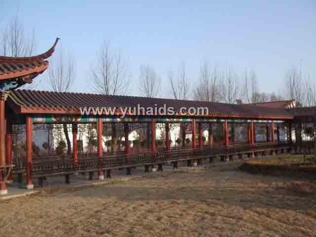 仿古木質長廊是中國傳統(tǒng)建筑雕塑中的一個最常見的長廊類別,主要以木材通過各種雕刻加工工藝制作并組合搭建而成的建筑雕塑。