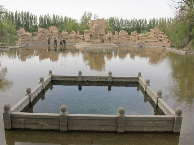 酒泉公園因園內(nèi)有泉有湖亦稱泉湖公園,是著名的西漢酒泉勝跡,已有兩千多年的歷史,是河西走廊的一座古典園林,園前廣場亦稱漢武廣場,是景區(qū)入口的走廊。